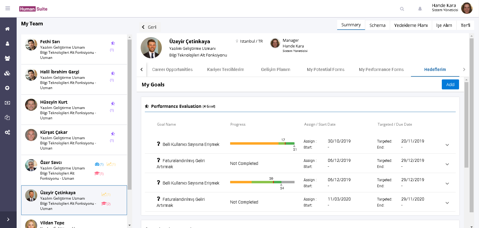 You can only manage your performance evaluations on a target basis. Through the agency of the