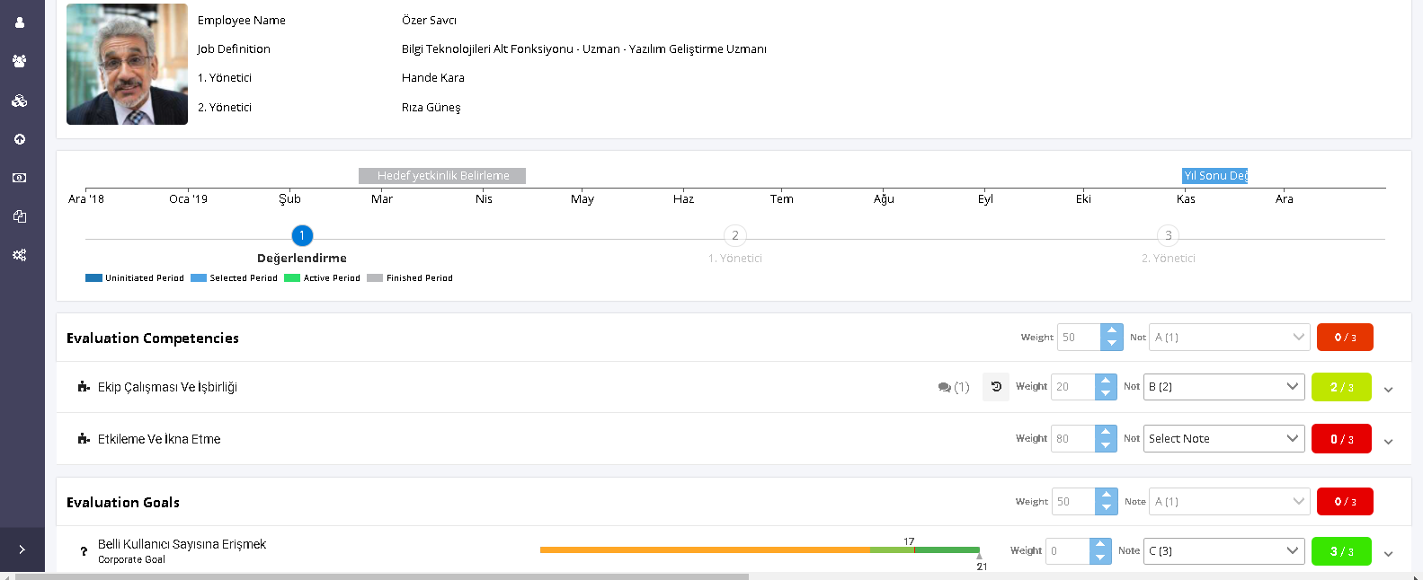 You can track and evaluate the employee's competencies, work habits, behaviors and goals at any